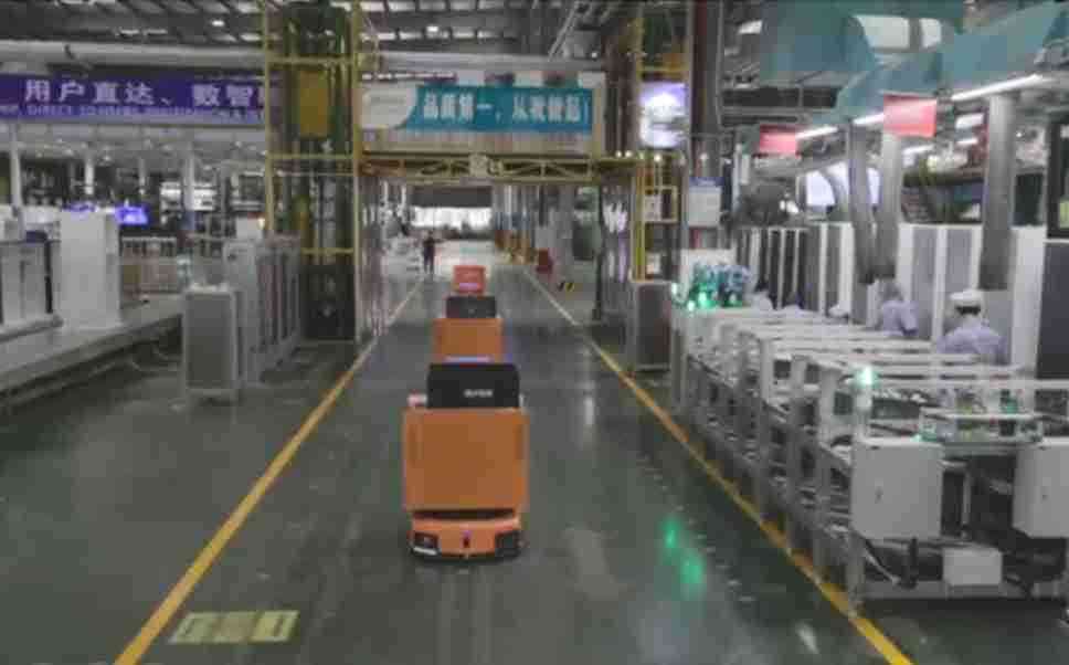 为车载冰箱物流配送打造的智能解决方案,,,包含产中物流通过潜伏举升AMR搬运至线边,,产后成品物流智能仓储,,,流程包含产中物流智能齐套入库,,,线边安灯叫料AMR智能配送至线边,,,,成品入库、、、、出库,,,,通过无人堆高车机器人,,,,智能仓储管理替代人工作业管理,,,,实现更高存储、、、、更高效率、、、、更具柔性化的解决方案。。。。